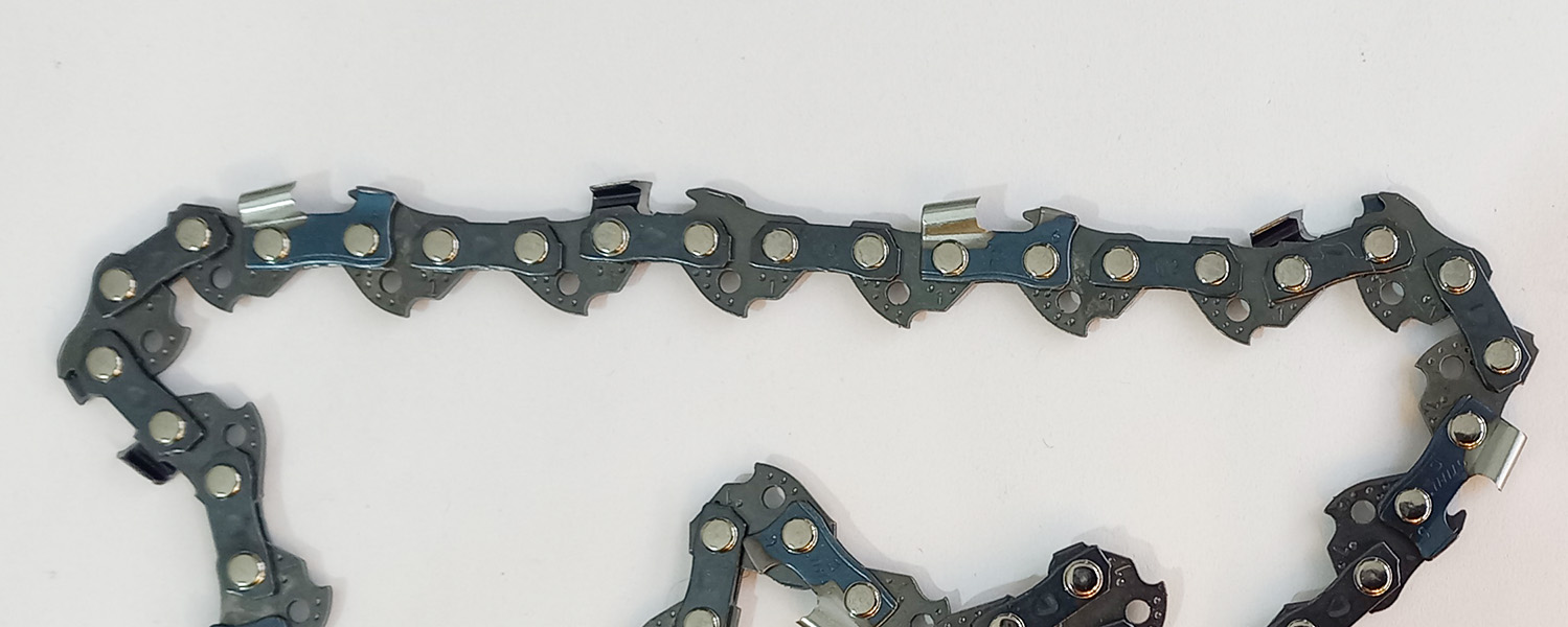 Cadena baja en vibraciones y de baja tendencia al rebote con eslabón motríz de corcova. Alta calidad de corte, compartimento de corte suave, robusta y de baja tendencia al traqueteo