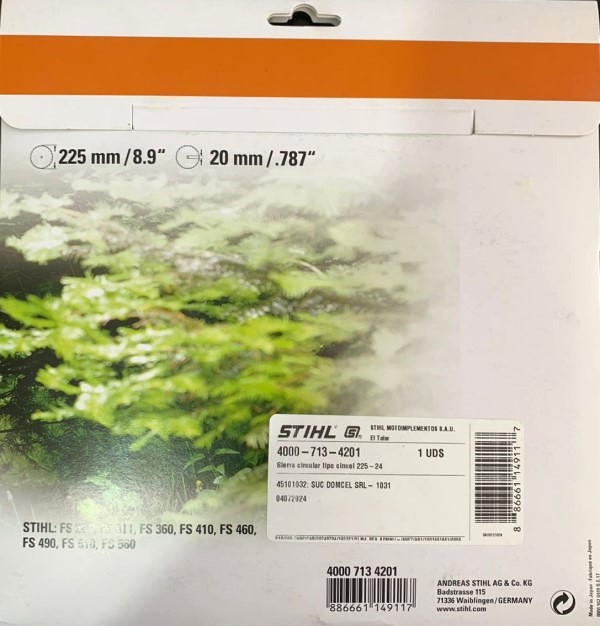 Tiene un diámetro de 225 mm y 24 dientes con una conexión de 20 mm. Las siguientes herramientas eléctricas son la mejor forma de utilizar este accesorio para desbrozadoras y bordeadoras de STIHL: